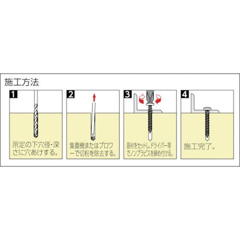 ・プラグを使用せず下穴のみでコンクリートに使用でき、普通のドライバーで簡単に取り付け可能です。