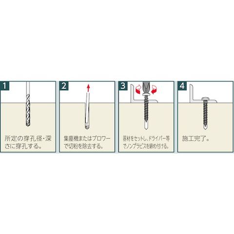 ・呼び径d(mm):5・下穴径(mm):4.3・埋込深さ(mm):30・引張最大荷重(kN):4.1・穿孔深さ(mm):35・長さ(mm):35・適合ドライバー:プラスNo.2・ヘッド形状:皿頭・適合材:コンクリート、ブロック