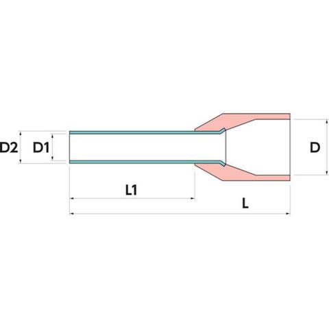 ・電線適合範囲 より線[[MM2]]:0.75・電線適合範囲 AWG:18・色:グレー・L(mm):12.3・L1(mm):6・D(mm):2.8・D1(mm):1.2・D2(mm):1.5