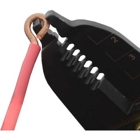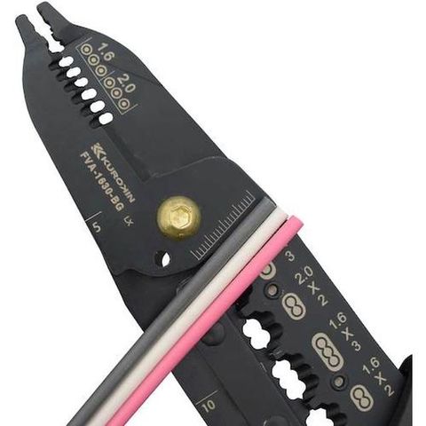 ・M4ネジの切断機能付きなので、コンセントの配線からボックスの取付けまで工具を持ち替えず作業ができます。・先端のくわえ部を細長く設計しているため、芯線の「のの字曲げ」加工がしやすくなっております。・ガイドとバネが付いていることにより、握り込みすぎず、バネの反発で芯線を傷つけず綺麗にストリップが可能です。・ケーブル外被のストリップ部は芯線形状に合わせた刃形状により、3芯を一気に綺麗にストリップできます。エコ電線のストリップも可能です。・本体には、ストリップの目安となる20mm、12cmのスケール付き。・環境にやさしく、手にフィットするエラストマー樹脂をグリップに使用。