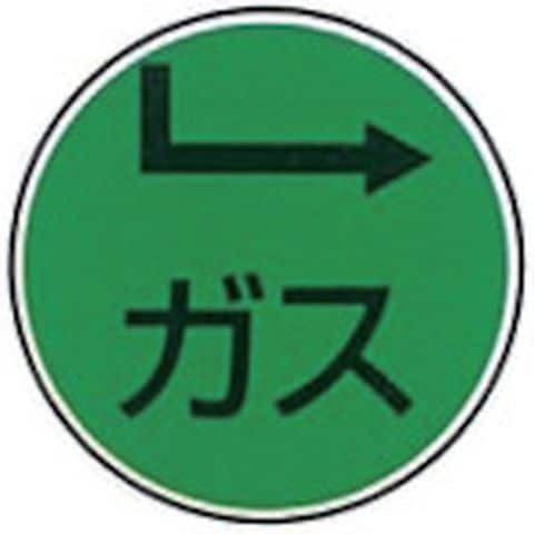 ・直径(mm):25・長さ(mm):67・色:緑地 黒文字黒矢印・表示内容:ガス 下右矢印