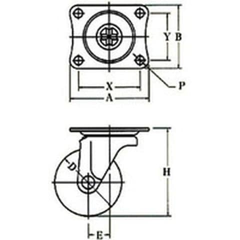 ・車輪径D(mm):38・タイプ:自在式・許容荷重(daN):28・許容荷重(kgf):28.6・車輪幅(mm):16・取付高H(mm):50・取付座A(mm):46・取付座B(mm):38・取付ピッチX(mm):36・取付ピッチY(mm):28・取付穴径P(mm):5.3・許容荷重(N):280