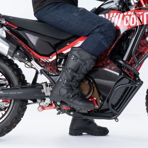 ・こちらの商品はアドベンチャーツーリングブーツです。オフロードコースやレースでの使用、林道や山でのハードな走行をする際は、安全性や耐久性の面でDFGフレックスブーツ等の、よりプロテクション性能の高いオフロードブーツをご使用ください。