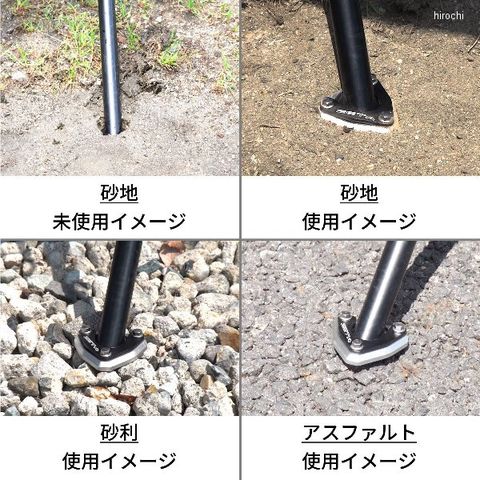 砂地や砂利などのサイドスタンドが埋まり込んでしまう不安定な路面でも、安定した駐輪を可能にする。