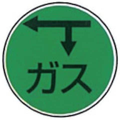 ・直径(mm):25・長さ(mm):67・色:緑地 黒文字黒矢印・表示内容:ガス 左矢印下矢印