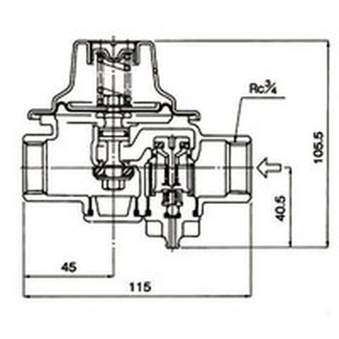 ・呼び径A:20・呼び径B:3/4・全長(mm):115・高さ(mm):105.5・適合流体:水・接続方式:JIS Rc