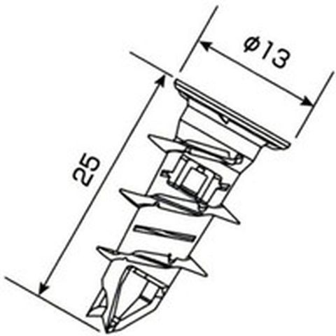 ・引張最大荷重:0.26kN/0.37kN(石こうボード厚さ9.5mm/12.5mm)・頭部径:13mm・適合ねじ長さ:取付物+20mm以上
