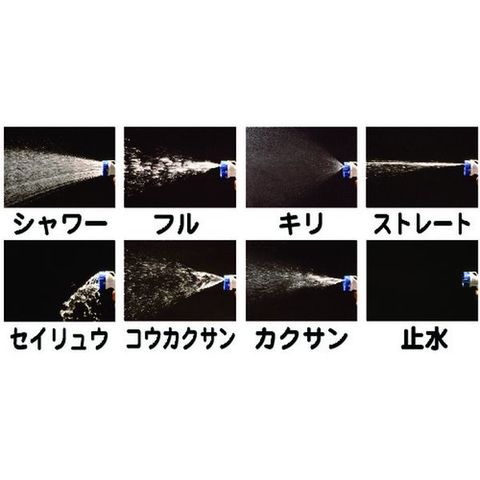 ・8種類(シャワー・フル・キリ・ストレート・セイリュウ・コウカクサン・カクサン・ストップ)の水形があります。・バケツの縁にはさんで水を溜める事ができます。