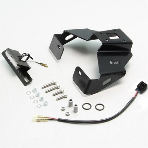 リアまわりをスタイリッシュに。ノーマルマッドガードを取外し、ナンバープレート をテールランプ下に移動してボルトオンで装着。ベースプレートは軽量化と耐久性を考慮したアルミ製ブラックアルマイト仕上。明るい高輝度白色LEDライセンスランプ、簡単に接続できる専用ハーネス付き。マッドガードを取外した後、アクスルシャフトに入るチェーンプラーとアクスルカラーはアルミ製シルバーアルマイト。