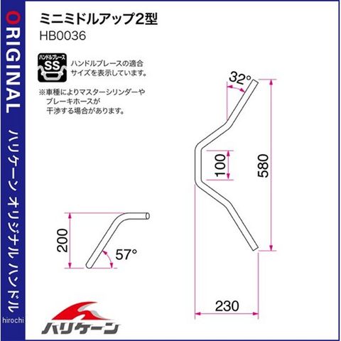 HB0036C-01 ハリケーン ミニミドルアップ 7/8 03年-07年 チョイノリ メッキ