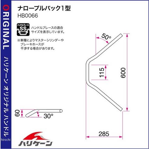 HB0066C-41 ハリケーン ナロープルバック 1型 キット専用ハンドル 02年-08年 マジェスティ125 メッキ
