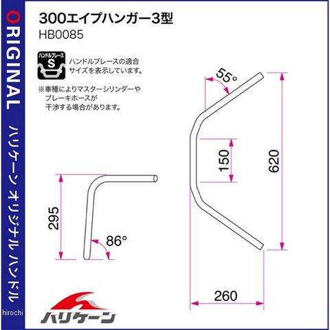 HB0085C-41 ハリケーン 300エイプハンガー 3型 キット専用ハンドル 01年-16年 ズーマー メッキ