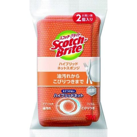 HBNT75E2PM スリーエム 3M スコッチ・ブライト ハイブリッドネットスポンジ オレンジ(2個入)