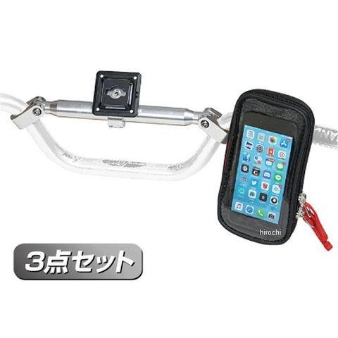 バイクのハンドルにスマホを装着する為のお得な3点セット商品。スマ・ホルダーはP.A.S.部分を差し込み、90度回すだけで簡単に着脱が可能。また6inサイズまでのスマホサイズに対応し、4inなら保護カバー付きでも収まります。
