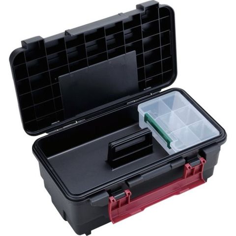 ・バックルをはめ忘れても持ち上げた際ロックがかかり中身の飛び出しを防ぐ他社には無いダブルロック機能付です。・車のバンパーグレードの超高強度樹脂を使用しています。・中皿にジャストフィットのパーツケースが1個付属です。・バックル(止具)は開け閉めのスムーズなワンタッチバックルを採用です。・積み重ねが可能です。・握りやすい大型ハンドルです。・錆びにくいステンレスピンです。・ハンドル格納部には水が溜まらない安心設計です。