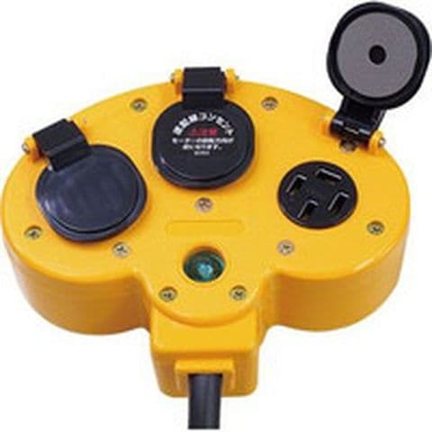 ・三相200V用コンセント×3個付きマルチタップコンセント。コンパクトなので機械回りや作業台周りで複数の電源を確保したい場合に最適。