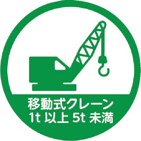 ・色:白/緑・表示内容:移動式クレーン 1t以上~5t未満・縦(mm):35・横(mm):35・幅(mm):35・長さ(mm):35