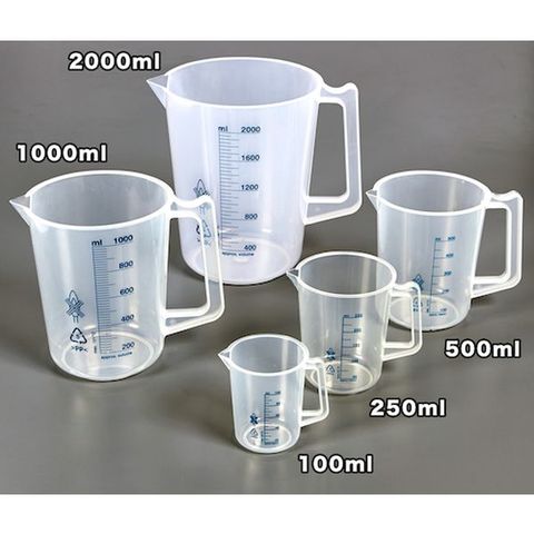 ・取手あり・青目盛・耐熱温度:約121℃・オートクレーブ可能・目盛開始位置:50ml