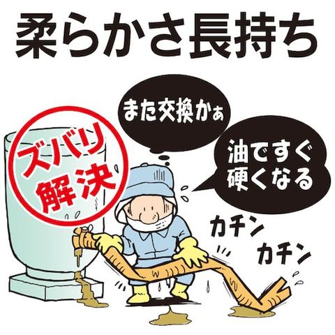 ・【耐油ホース】一般的な塩ビホースに比べ耐油性が良く硬化しにくい耐圧ブレードホースです。油だけでなく水・薬品・エア等様々な流体で使用可能な多目的耐圧ブレードホースです。・【長持ち】従来の塩ビブレードホースに比べ、最も耐油性に優れ、硬化しにくいです。(弊社塩ビホース比較)・【透明性】透明性が良く、流体の確認ができ安心です。・【柔軟性】しなやかで継手に挿入しやすいです。・【法適合】RoHS2修正規制適合で安全・安心です。