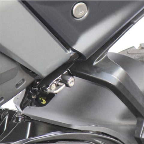 車体イメージを崩さずに車体に違和感なく収まる設計。取付は左側タンデムステップに共締め。