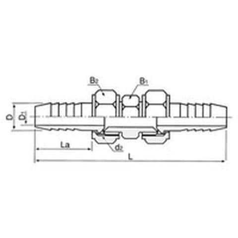 ・最高使用圧力(MPa):3.45・接続口径(タケノコ外径)(mm):10.5・六角対辺(mm)ナット:19・六角対辺(mm)本体:17・タイプ:両口ホースジョイント・使用流体:水・空気・油