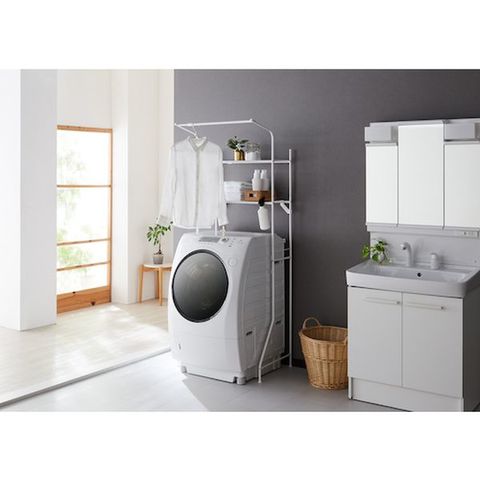 ・組立が簡単で工具不要です。・洗濯機上部を有効活用できます。・ちょっと掛けに便利なハンガーパイプ付きです。・細かいピッチのネット棚で小物も置けます。