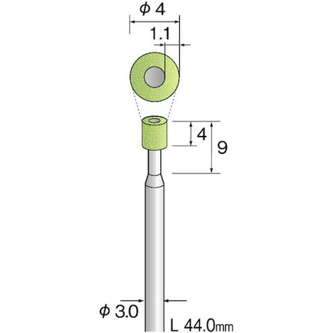 ・粒度(#):170・刃径(mm):4・刃長(mm):4・軸径(mm):3・全長(mm):44・最高使用回転数(rpm):67000