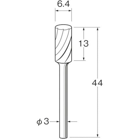 ・刃径(mm):6.4・刃長(mm):13・軸径(mm):3・タイプ:ロー付・最高使用回転数(rpm):26000・全長(mm):44
