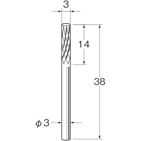 ・刃径(mm):3・刃長(mm):14・軸径(mm):3・タイプ:ロー付・最高使用回転数(rpm):40000・全長(mm):38