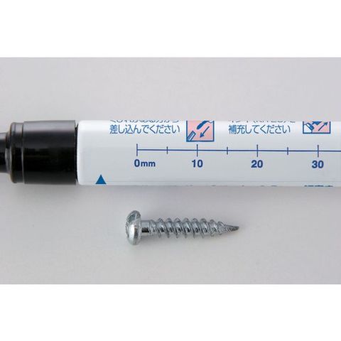 ・ペン先が長いので、一般のマーカーでは届かない、狭くて深いスキマへのマーキングや部品の穴を通してのマーキングができます。・ポケットに差したまま作業ができるストラップ用の穴付きキャップや、定規付のボディーなど作業現場での使いやすさを配慮した工夫を随所に施しました。・ペン芯交換、インク補充が可能です。