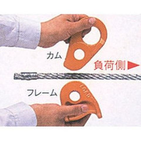 ・レバーブロック、チェーンブロックなどとワイヤロープとの併用作業用に開発されたワイヤロープ専用固定器具です。・ワイヤの場所を問わず、どこでも簡単に取り付けられます。・ワイヤをフレームに通し、引くだけでワイヤを確実につかみます。・独特のみぞ機構により、ワイヤをいためません。