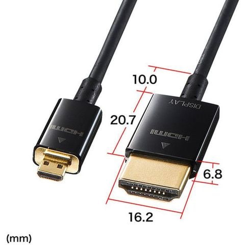 ・ケーブル長(m):約5.0・コネクタ:HDMIマイクロプラグーHDMIプラグ(HDMIタイプDーHDMIタイプA)・ケーブルサイズ(mm):外径約3.2・色:ブラック・被覆材料:TPE樹脂・HDMI規格:HIGHSPEEDwithETHERNET規格準拠