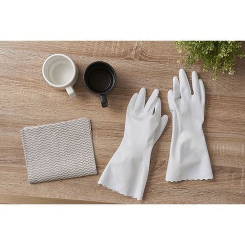 ・色:ホワイト・サイズ:M・全長(cm):30.0・手のひら周り(cm):20.0・中指長さ(cm):7.8・厚さ(mm):約0.3・すべり止め:あり・裏布:無・裏毛:無