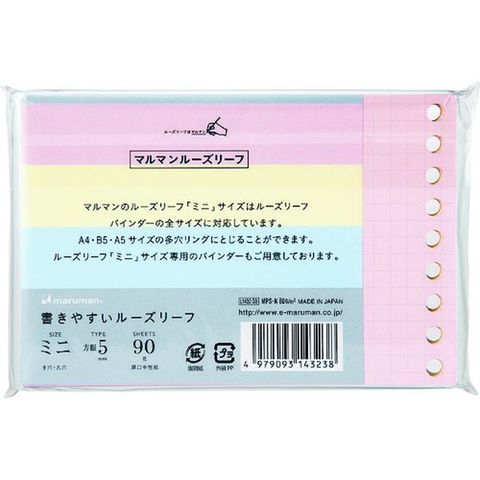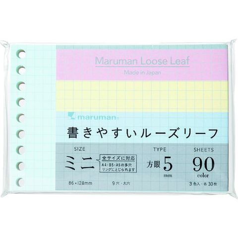 L143299 マルマン(株) マルマン B7E 書きやすいルーズリーフミニ 5mm方眼罫 3色アソート