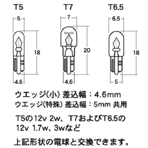 最も使用頻度の高いT10ウエッジ型と12v口金型の2タイプに加え、メーター球に多く採用されているT5、T7、T6.5ウエッジ球用の超小型サイズもラインナップしました。
