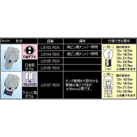 L8184 M&H マツシマ RDK Lビーム ストップランプ テールランプ用 12V 低ピン側 赤+電球