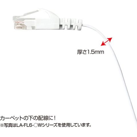 ・厚さ1.5mmのフラットタイプ、爪折れ防止カバー付きギガビット完全対応LANケーブルです。・伝送速度1000Mbps(1Gbps)、伝送帯域250MHzを実現した、ギガビット完全対応LANケーブルです。・薄さ1.4mmの超フラットで、カーペットの下や、細い隙間にスッキリ配線できます。・コネクタ部の爪が折れ難いよう、ラッチカバー付きコネクタを採用しています。