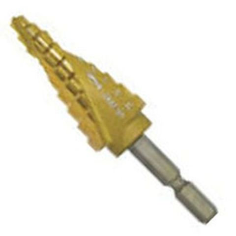 ・段幅(mm):4.0・段数(段):9・シャンク形状:6.35mm六角軸(ボール溝付)・シャンク径(mm):6.35・穴あけ寸法(φ):5、7、9、11、13、15、17、19、21・全長(mm):80・表面処理:チタンコーティング