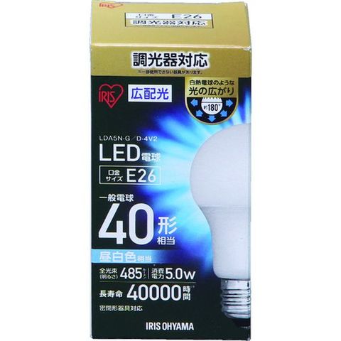 LDA5NGE26D4V2 アイリスオーヤマ(株) IRIS LED電球広配光 調光 昼白色40形相当(485lm)