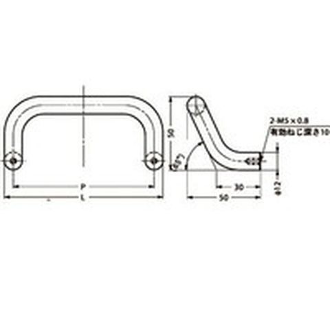 ・全長(mm):108・全高(mm):50・径(mm):12・ねじ寸法:M5・ねじ深さ(mm):10・取付ピッチ(mm):96・色:ステンレス・穴径(mm):M5・表面処理:サテン仕上・奥行(mm):50・高さ(mm):50・全長L(mm):108・L(mm):108・P(mm)96・耐荷重(N):441・耐荷重(kgf):45