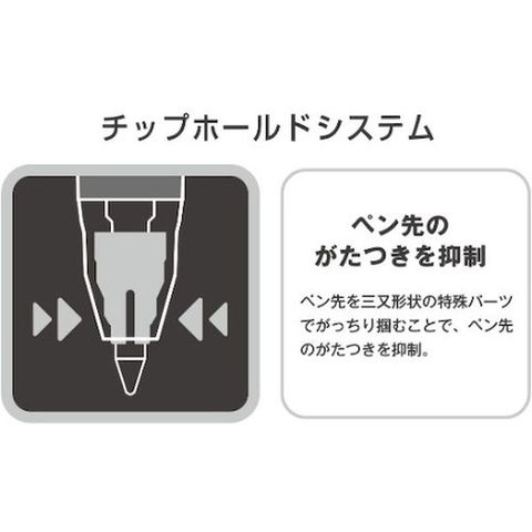 ・より集中へと誘うノック式フリクションボールノックZONE。・同社従来品よりも“濃く・長く”書ける「プレミアムフリクションインキ」搭載です。・ペン先のがたつきを抑制し、安定した筆記が可能です。・ノック音を大幅にカットしたノック機構です。