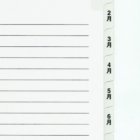 ・見出し部分はラミネート加工、丈夫で長持ちします。・見出し部分には油性ペンで記入できます。・1~12月の月別の文字入りです。・穴切れ防止補強シール付です。