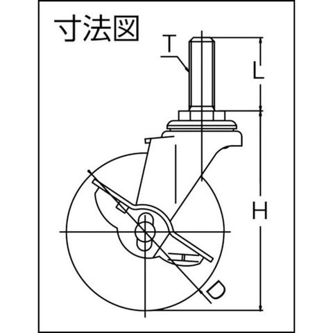 ・車輪径D(mm):50・タイプ:自在式(ストッパー付)・許容荷重(daN):25・許容荷重(kgf):25.5・車輪幅(mm):20・取付高H(mm):68・軸長L(mm):35・ねじT:M12・ねじピッチ(mm):1.75・許容荷重(N):250