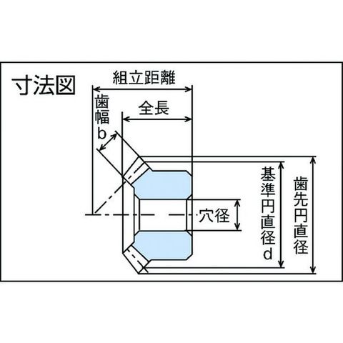 ・歯数:20・基準円直径(mm):25・穴径(mm):6・組立距離(mm):24・歯先円直径:φ26.77・全長(mm):16・ハブ外径:φ20・ハブ長さ(mm):8.99・歯幅 (mm):5.5・圧力角:20°・歯数比:1:1・穴長さ(mm):14・TipDistance:12.38・歯先角:49°3'・ds:φ14.43・ハブ外径dh(mm):φ20・ハブ長さlh(mm):8.99