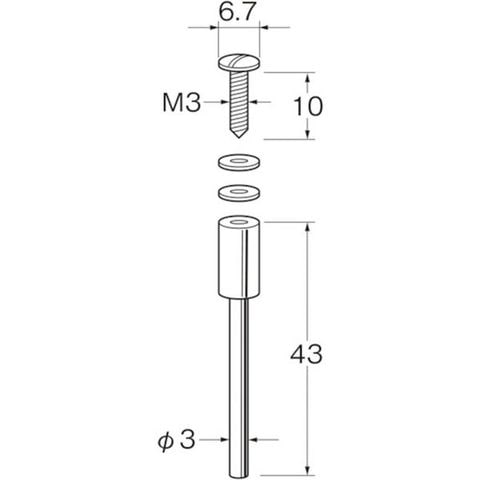 ・軸径(mm):3・軸長(mm):43・最高使用回転数(rpm):15000・ねじ部(mm):3.0・ねじ頭径(mm):6.7