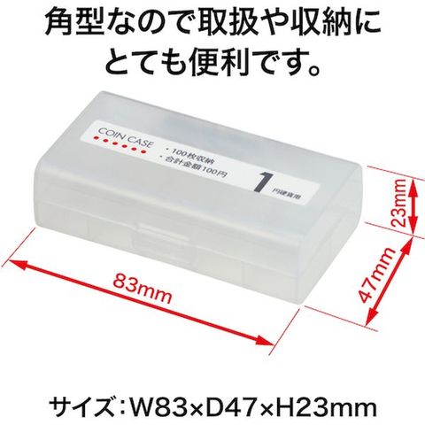 ・色:透明・硬貨収納枚数:1円 100枚・幅(mm):83・奥行(mm):47・高さ(mm):23