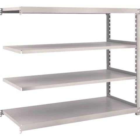 ・間口(mm):1460・奥行(mm):889・高さ(mm):1207・有効間口(mm):1416・色:ネオグレー・棚段数(段):4・均等積載量(kg/段):200・最大積載量(kg/台):1500・棚板調整ピッチ(mm):25・タイプ:連結型・組立目安:2人30分