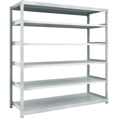 ・間口(mm):1502・奥行(mm):889・高さ(mm):1807・有効間口(mm):1416・色:ネオグレー・棚段数(段):6・均等積載量(kg/段):1500・最大積載量(kg/台):1500・棚板調整ピッチ(mm):25・タイプ:単体型・組立目安:2人30分