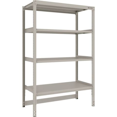 ・間口(mm):1202・奥行(mm):609・高さ(mm):1807・有効間口(mm):1116・色:ネオグレー・棚段数(段):4・均等積載量(kg/段):1500・最大積載量(kg/台):800・棚板調整ピッチ(mm):25・タイプ:単体型・組立目安:2人30分