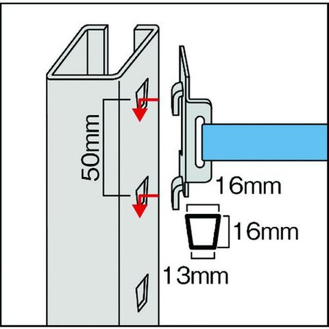 ・支柱のスリットに差し込むだけで取り付けができる落下防止ベルトです。・破断強度はセンターバックル100kg、樹脂バックルは90kgです。